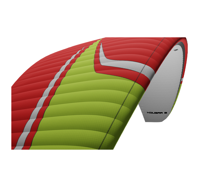 - The leading edge shape is much more rigid and uniform which results in a much more consistent and progressive inflation and therefore an easier take off. The profile is taut at all times, without creases, and fully optimised for all flight phases.